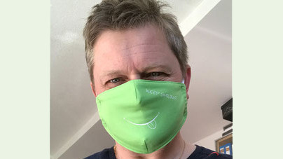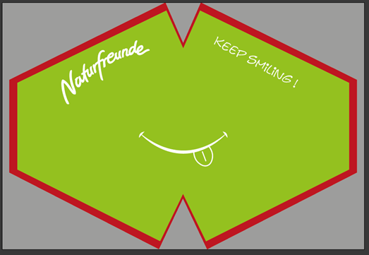 Diese Mund- und Nasenmaske ist aus Baumwolle und mit dem lustigem Aufdruck "Keep Smiling" sowie mit dem Naturfreunde-Logo bedruckt