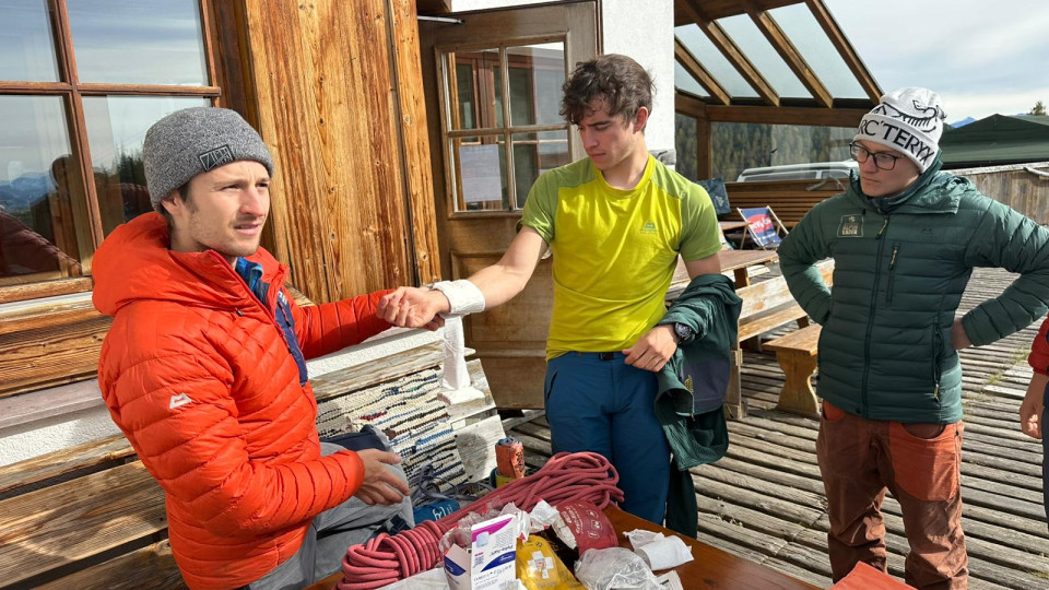 Der zweite Ausbildungstag stand im Zeichen der Alpinmedizin. Unterstützt von Bergführeraspirant, Arzt und ehemaligem Alpinkader-Mitglied Matthias Lampel. Geübt wurden verschiedene Szenarien zum Abtransport verletzter Personen, Wärmeerhalt, das crABCDE Schema sowie praktische Tipps und Tricks für die Expedition. Zusätzlich wurden mögliche Notfallszenarien diskutiert und ein Notfallplan erstellt, den unsere Jungs aber hoffentlich nie brauchen werden!