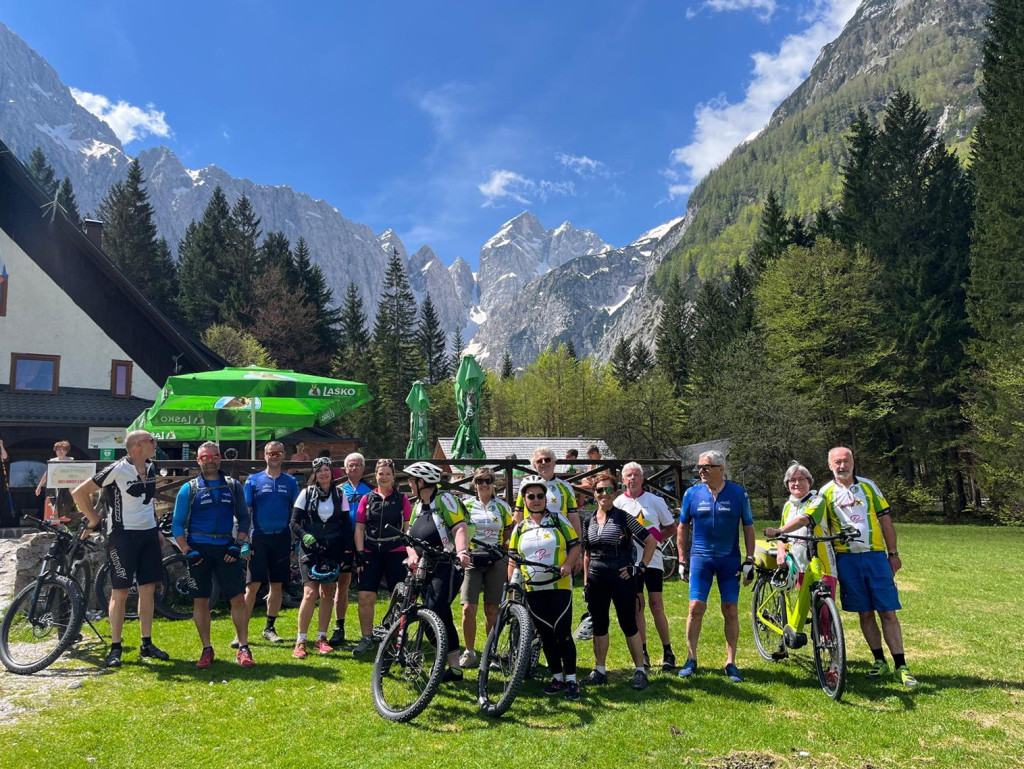 Mit insgesamt 17 Teilnehmern starteten wir zu einer gemeinsamen Radtour über ca. 50 km mit den Naturfreunden Arnoldstein. Bei frühlingshaften Temperaturen trafen wir uns bei der Grenze, fuhren ein kurzes Stück am Alpe-Adria Radweg (Ciclovia Alpe-Adria), ehe wir die Abzweigung nach Slowenien nahmen. Die Strecke ging vorerst bis nach Planica und schlussendlich radelten wir ca. 6,5 km über einen beinahe ebenen, großteils schotterigen Weg zur Berghütte Tamar, die auf einer weiten Lichtung auf 1108 m liegt. Beeindruckt waren wir auch von der kürzlich renovierten Kapelle. Nachdem wir unseren Durst gestillt hatten ging die Fahrt zurück nach Rateče, wo für uns in einem Gasthof Plätze reserviert wurden. In gemütlicher Runde genossen wir das Mittagessen, ehe wir unsere Rückfahrt antraten.