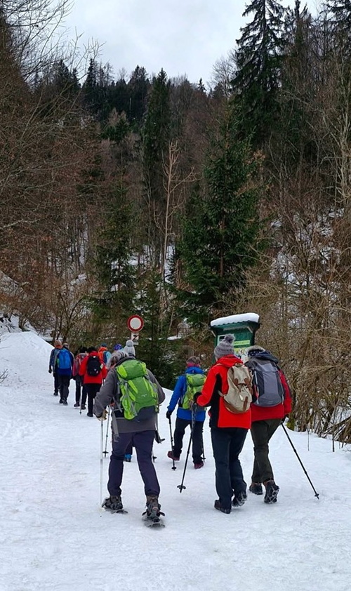 14 Naturfreunde folgten der Einladung der Ortsgruppe St. Stefan i.G. zur Wanderung in den bekannten Wallfahrtsort Lussari über den Pilgerweg mit knapp 1000 hm, ausgerüstet mit Tourenskiern, Krallen und Schneeschuh.