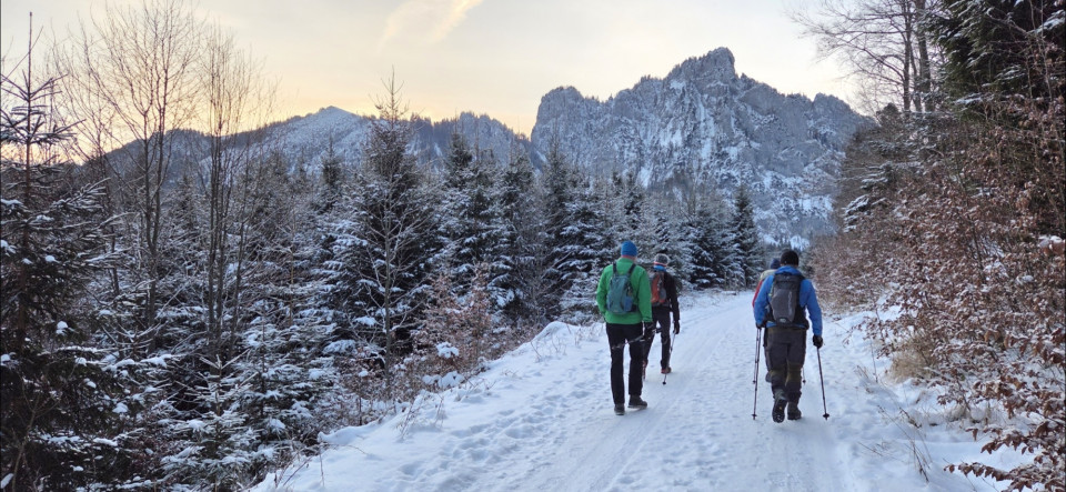 Wir wanderten die Forststrasse hinauf zur Ramsau Alm, die schon den Ofen angeheizt haben, für ein herrlich gutes Bratl. Aber zuerst kommt die Bewegung, also ging's bei der Hütte vorbei, hinauf auf den Katzenstein. Da der Schnee sehr griffig war, kamen wir bis zum Gipfel gut voran.