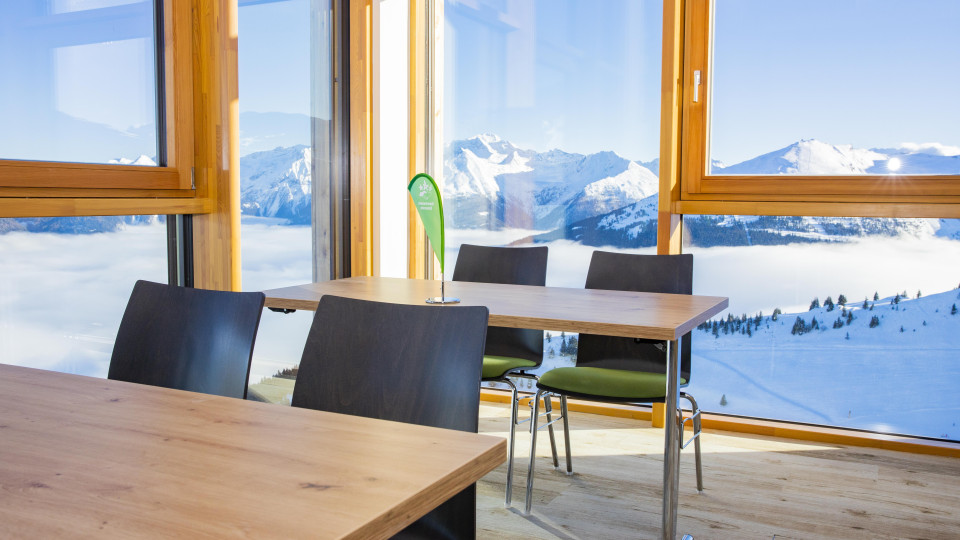 Wer Fortbildung und Natur verbinden möchte, nutzt den Seminarraum für bis zu 20 Personen – ausgestattet mit Internet, Beamer, TV und Flipcharts. Der perfekte Ort für Kurse, Workshops und Seminare mit Blick auf die Alpen.